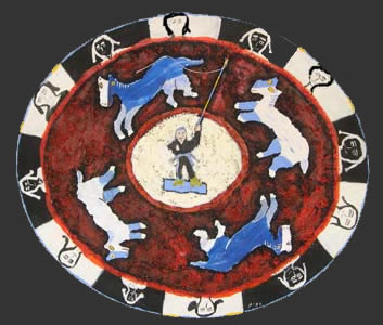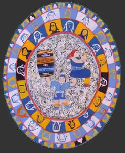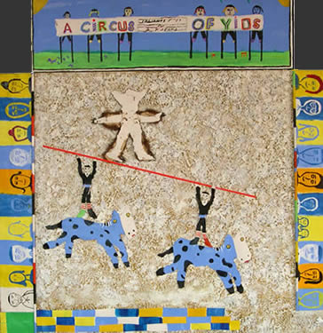 32" x 25" x 3" acrylic and collage on canvas 2000 |